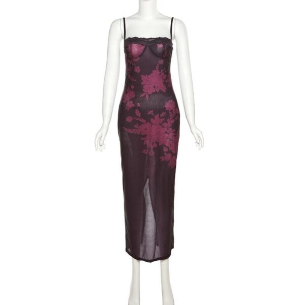 Be the first to review “Lace hem contrast flower pattern slit cami midi dress”