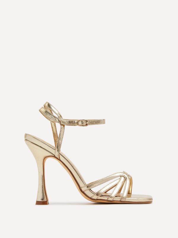 Discover Serena, the perfect soft faux leather sandal for any formal occasion. This stylish high-heeled sandal features a caged front strap that adds a modern flair to any look. With its timeless design, Serena is the ideal companion for weddings and parties.